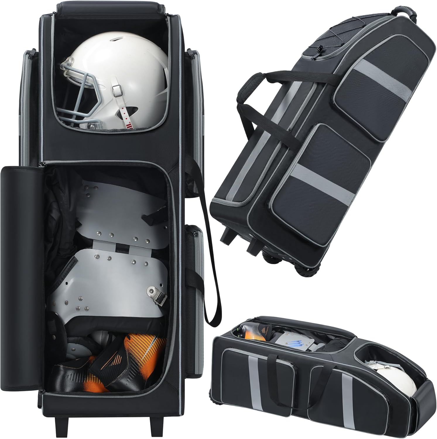 Football Bag with Wheels, Large Capacity Durable Football Gear Bag with & Multi-pocket, Tackle Player Equipment Bag Rolling Sport Bag for Football Accessories